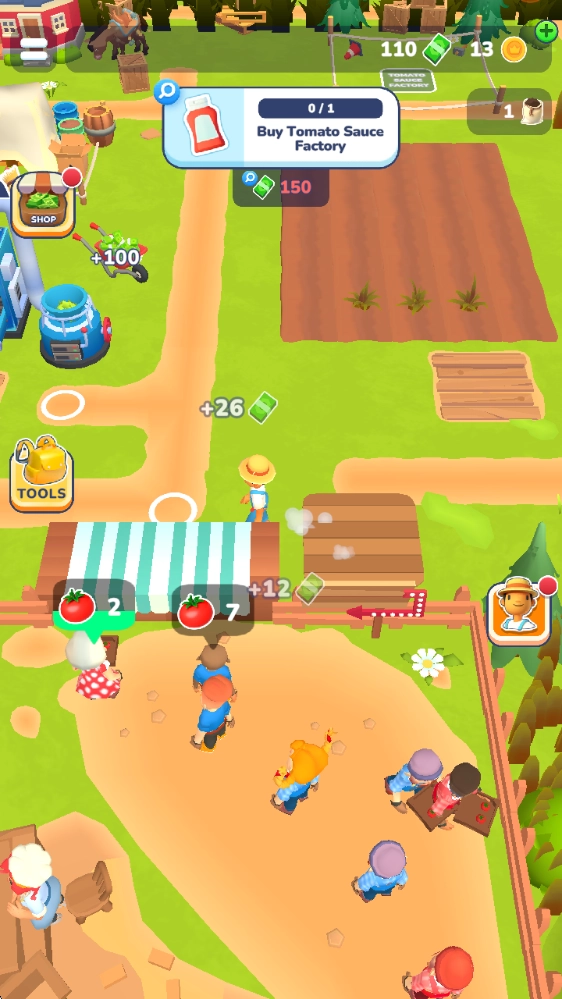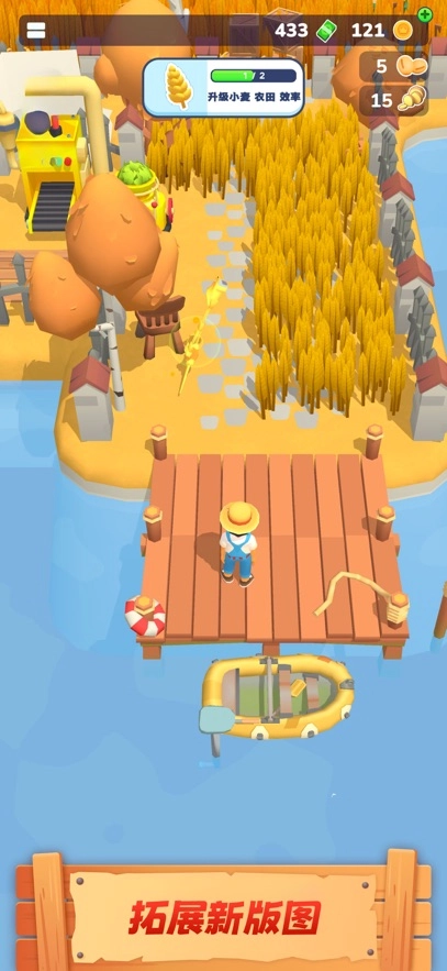 用赚取的钞票解锁新建筑(如仓库)或开垦更多区域。