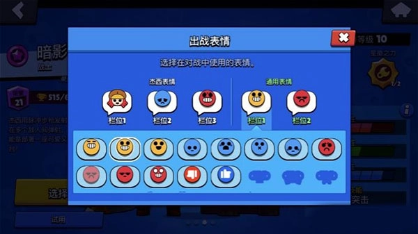 玩家可以更换左侧的三个英雄专属表情,以及右侧的两个通用表情。