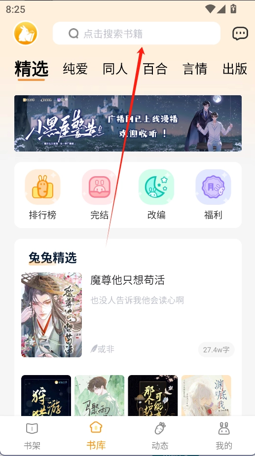 阅兔文学是专为文学爱好者打造的阅读与创作天地,这里汇聚了海量优质原创小说,题材丰富多元,涵盖纯爱、言情、同人等类别,能充分满足不同读者的阅读偏好。平台还设有个性化推荐、离线阅读、书架管理等特色功能,力求为用户带来更惬意的阅读体验。