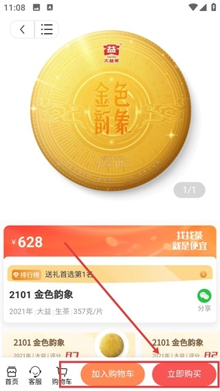 进入商品详情页面后,点击【立即购买】按钮,即可进入下单流程,将这款茶叶收入囊中。