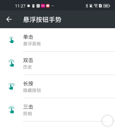 悬浮按钮支持单击、双击、长按和三击等多种手势操作,且每种手势都对应着特定的功能。