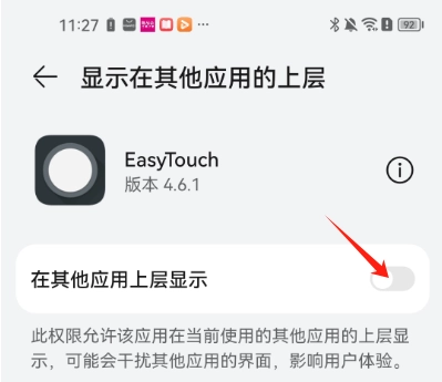 开启前需要将悬浮窗权限打开。