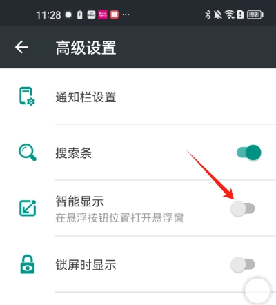 你可以在easytouch的高级设置界面中,找到智能显示的开关选项并将其开启就可以了。