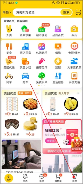 点击进入美团,选择我的。