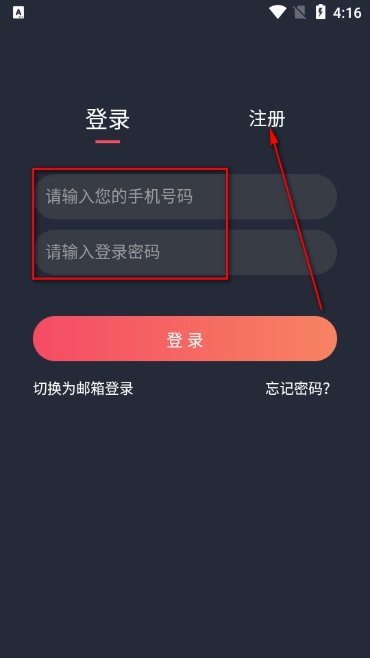 使用该软件需先登录,支持手机号登录方式;若未注册账号,可点击注册按钮完成账号注册。