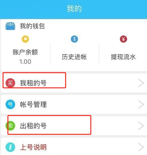 提供热门的游戏账号租用信息;