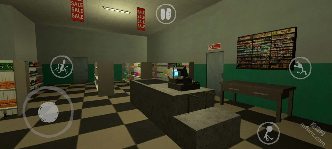 午夜超市的中文版界面运用了3D技术,营造出的沉浸感与代入感更为强烈,让你仿佛真正化身为这家超市的店员。你可以借助屏幕上的虚拟按钮灵活移动,以此躲避怪物的攻击,同时运用手中的武器将它们一一消灭!