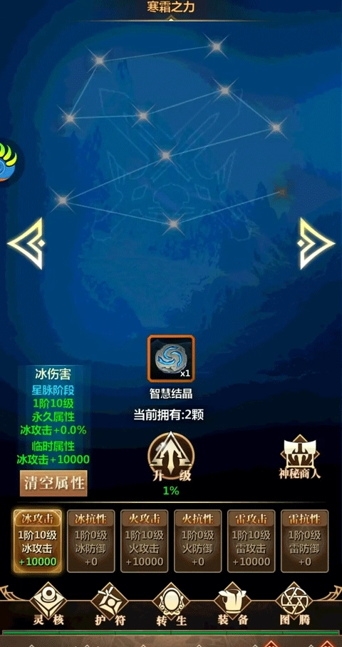 这个系统是用来提升四维百分比的,升到满级能把四维百分比拉满百分之百。不过升级得用经验去换经验之石才行。拿力量属性举例子吧,总共分一百阶,每突破一阶就加百分之一的力量加成;而且每一阶里还有十级,每升一级能加五百点力量。这里得特别注意,加的这些力量属性有个专门的叫法——临时属性,意思就是每突破一阶,之前加的力量就会清零重置。打个比方,一阶升到十级总共加了五千力量,等你突破到二阶后,新增加的力量不是在五千基础上变五千五,而是直接回到初始的五百点重新开始算。