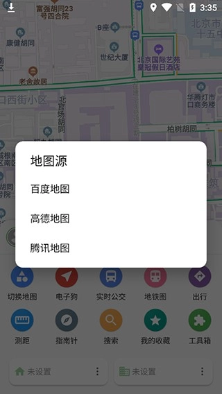 软件涵盖百度地图、高德地图、腾讯地图这四大数据源,若要切换地图,可返回主界面后点击相应按钮。