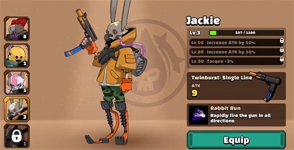 点击“character”按钮能够挑选不同的角色参与闯关。