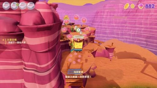 虽然收集不再是通关的核心目标,但游戏里依然保留着收集玩法,只是呈现形式有所不同。当玩家收集到足够数量的金币时,就能解锁海绵宝宝的专属服装,游戏中收录了数十套经典造型的服装供玩家收集。另外还有一个收集要素,需要在首次通关关卡后,通过与NPC对话接取支线任务来获取。