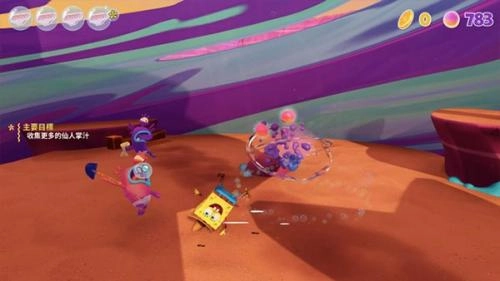 那些次要目标要到二周目关卡才会出现,游戏主线流程大概10小时,要是想全收集就得花更久时间。这里建议大家先把游戏主线完整通关,之后再回头去收集次要目标——最关键的原因是,每次进入新的箱庭世界,海绵宝宝都会解锁新能力,很多机关谜题都得靠后期解锁的能力才能解开。等所有能力都解锁完再去收集,就能避免反复探索带来的枯燥感。 至于缺点,我第一感觉是难度有点低,但好在小游戏和Boss战能看出制作组花了心思。比如片场关卡会变成横向动作玩法,得跟着镜头移动;遇到灯笼鱼时则变成躲猫猫游戏。像和珊迪的Boss战,得琢磨怎么把在大车轮里的她打下来,这些设计给简单的战斗系统加了不少分。