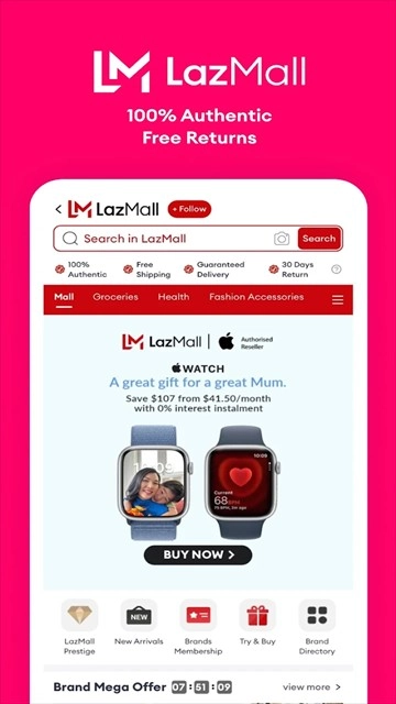 LazMall是Lazada旗下的旗舰品牌商品平台,这里的商品均为正品,由品牌方通过其在Lazada上的品牌门店直接销售。我们承诺100%正品保障,品牌直销,直接发货到您手中。您可以在这里尽情选购超过10,000个全球知名品牌的商品,像Nike、Adidas、Maybelline、L'Oréal等都包含在内。