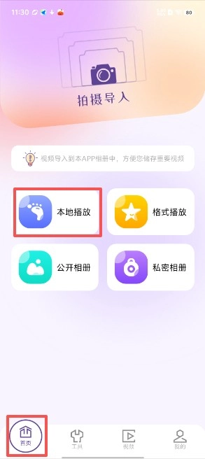 第一步:启动软件并进入首页,找到界面上的“本地播放”选项