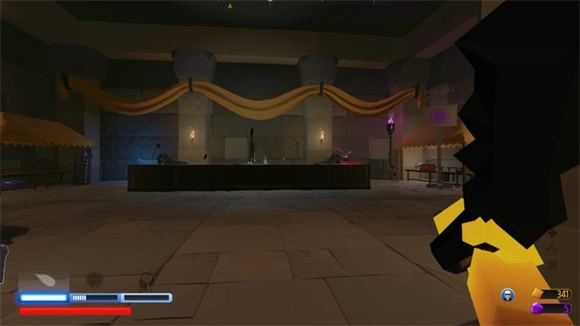 在地牢探险的过程中,偶尔会碰到一些特殊的怪物。这些怪物大多实力远超当前关卡的难度,比如在第一关就可能遇到本该出现在第三关的怪物。像体型巨大的金色矿石怪就属于这类,击败它们之后会掉落蓝币。蓝币的位置在金币的上方,而这些蓝币可以用来在职业室附近兑换特殊的永久升级道具。