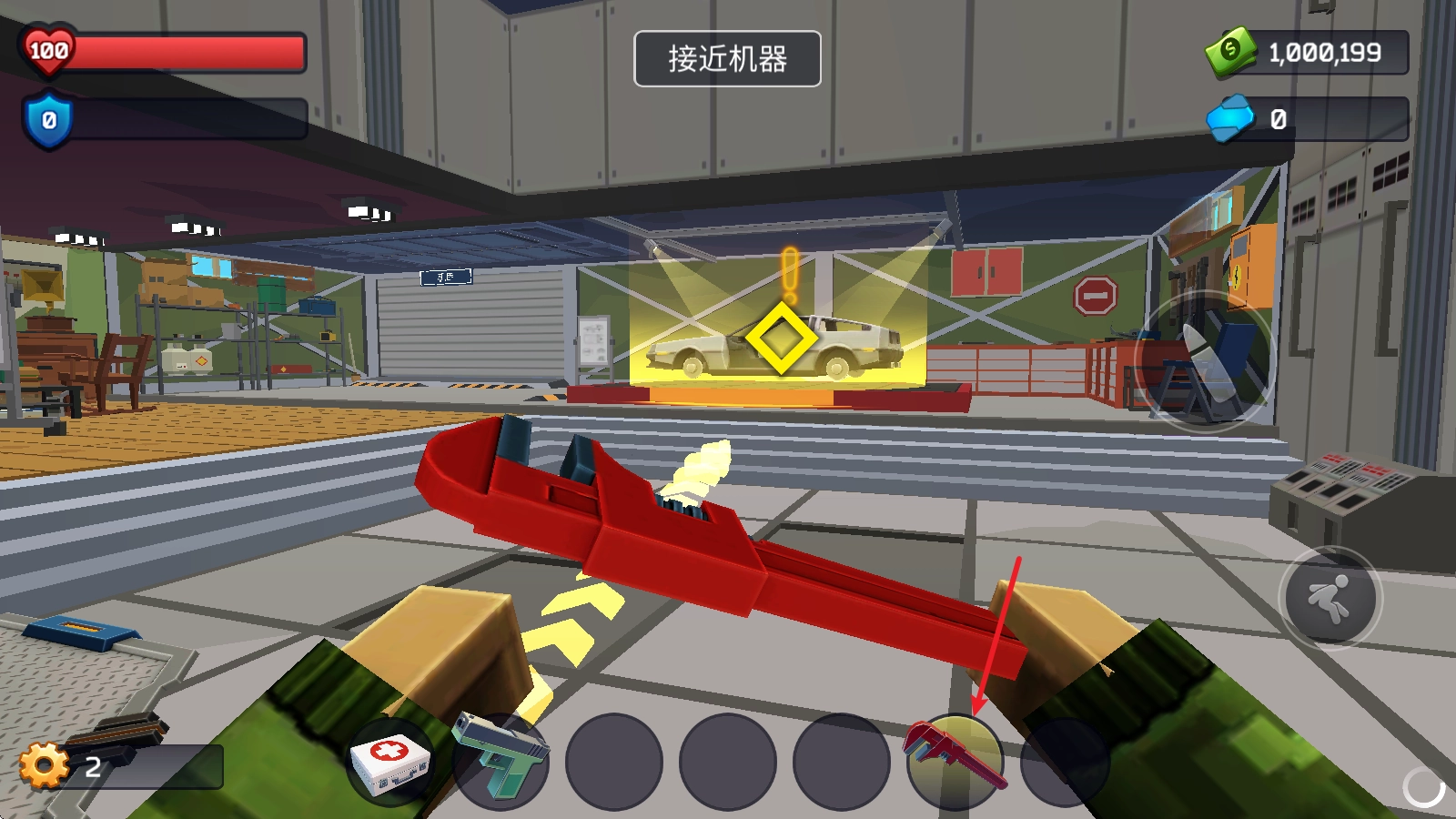 回到基地后,点击下方的工具栏就能切换武器,借助过关获取的齿轮可以修理机器。