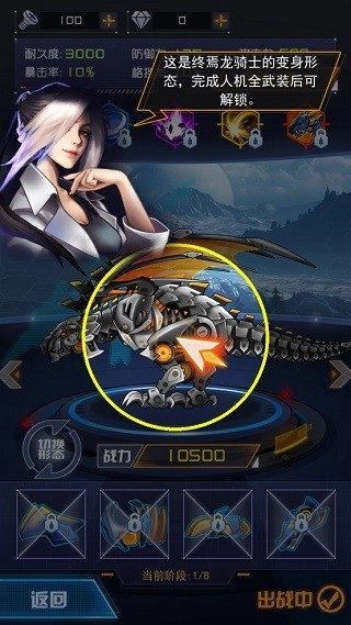 进入之后,了解一下最新研发的机甲变身技术,点击切换。