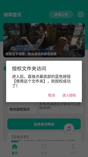 安装屏幕帧数控制器后,首先要为App开启悬浮窗权限。