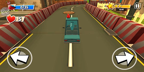 汽车会自动加速前进,玩家只需点击左右两侧的箭头来控制车辆方向。