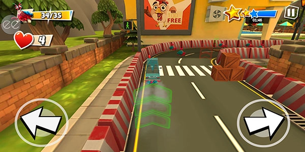 在驾驶过程中,赛道上会出现一些堆放的盒子,我们要尽量避开它们,不然就会减少生命值,也就是左边爱心的数量。