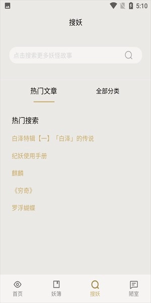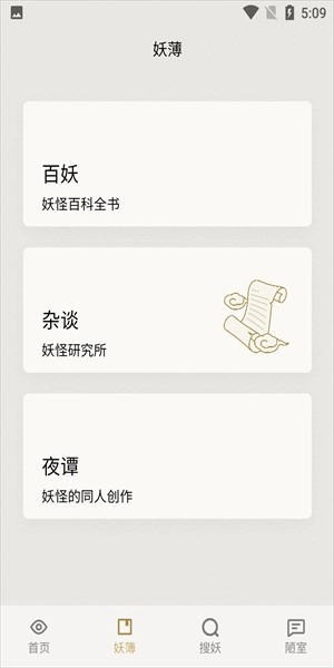 点击妖簿可以看见百妖全书、杂谈、夜谭等等。