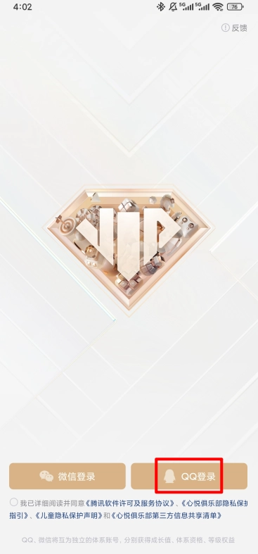 如图,勾选服务协议和隐私政策,选择"qq登录"。