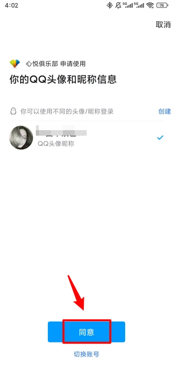然后获取QQ头像和昵称信息,点击"同意"。