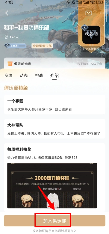一键点击进入俱乐部详情页面,然后点击页面底部的“加入俱乐部”按钮。