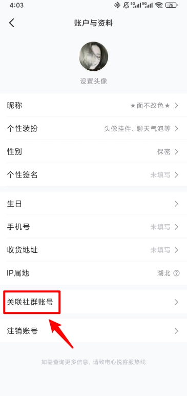 如图所示,点击底部"关联社群账号"。