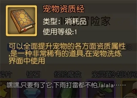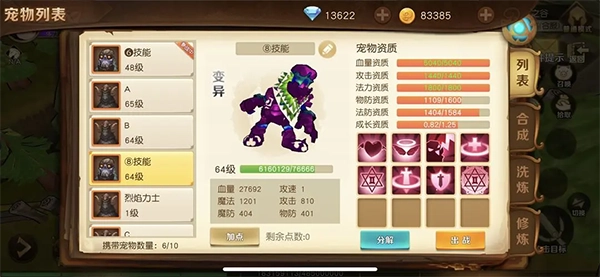 宠物资质有两种情况:一半概率是各属性都处于中等偏上水平,后续提升所需的成长丹和资质经相对较少;另一半概率则是某些资质极高,而其他资质却非常低。