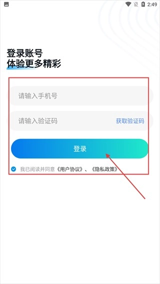 首先在【请输入手机号】输入框中填写您的手机号码,接着点击【获取验证码】按钮,在收到验证码并填写后,勾选相关协议,最后点击【登录】按钮即可完成登录操作。