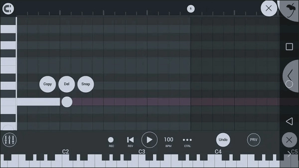 拖动右侧的小圆形能够调整音符的长度(即改变时值)。选择del选项可删除该音符。点击“×”按钮就能退出当前页面。
