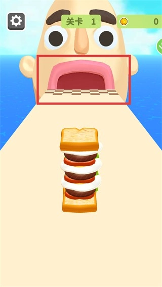 当所有食材都堆叠完毕后,角色会张开嘴巴,把组合好的三明治送进自己嘴里。