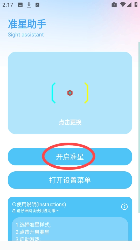 点击“开启准星”,按照指引完成设置。