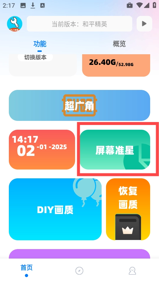 打开软件后,在功能列表中找到“屏幕准星”选项。