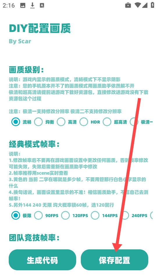 以和平精英这款游戏为例,你只需点击“自定义配置”按钮,接着把你设置好的个性化内容保存下来,这些设置就能立即生效了。