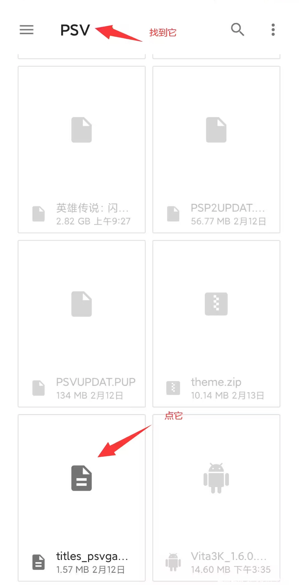 点击下方的+号,找到PSV文件夹中名为title_psvgames.tsv的列表文件,打开它就能查看游戏列表了。