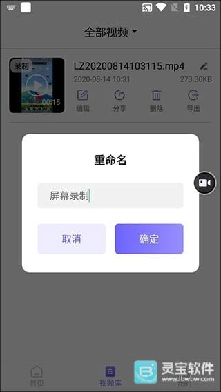 切换至视频库,就能看到刚刚录制好的屏幕内容,点击那个小笔形状的图标就能进行重命名操作,最后确认一下就完成了。