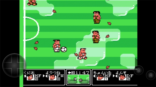 带球时在静止状态下,按AB键可向正上方挑球;若同时按住左或右方向键,则会向对应方向挑球。跑动中带球跳起时,按A键执行传球,按B键进行射门;时机把握恰当的话,还能触发必杀技(跑动跳跃状态下同样可以释放必杀)。