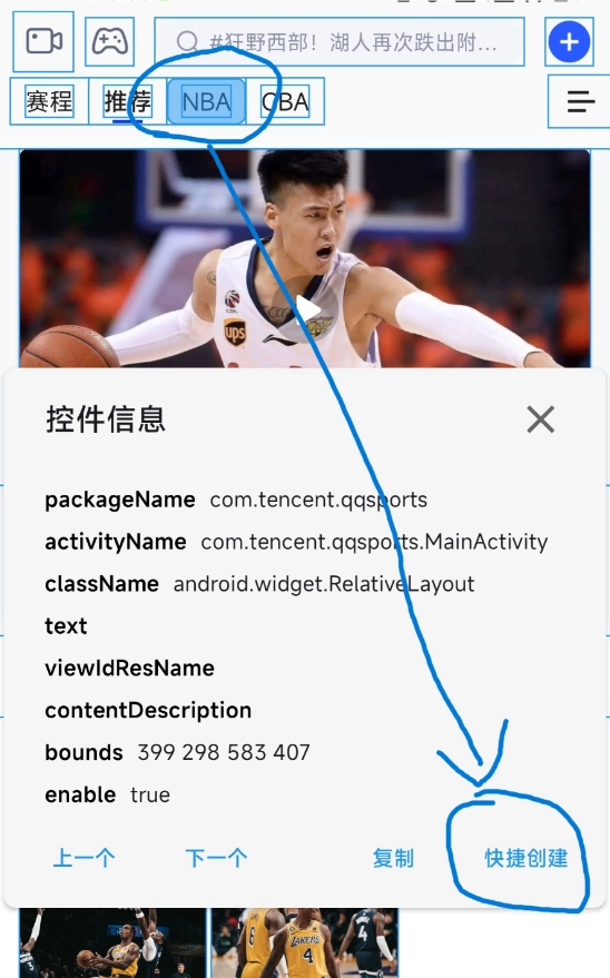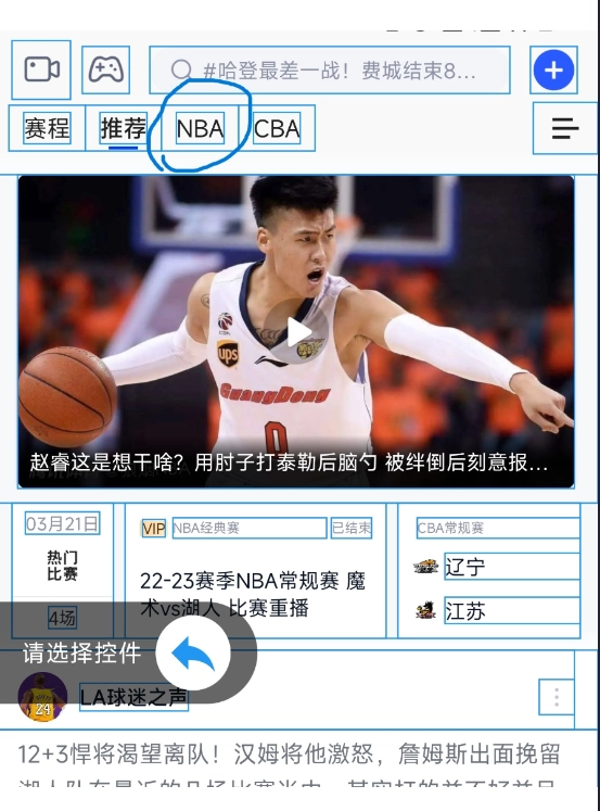 举个例子,我希望在打开腾讯体育后自动点击NBA栏目,那么第一步就是点击录制按钮。