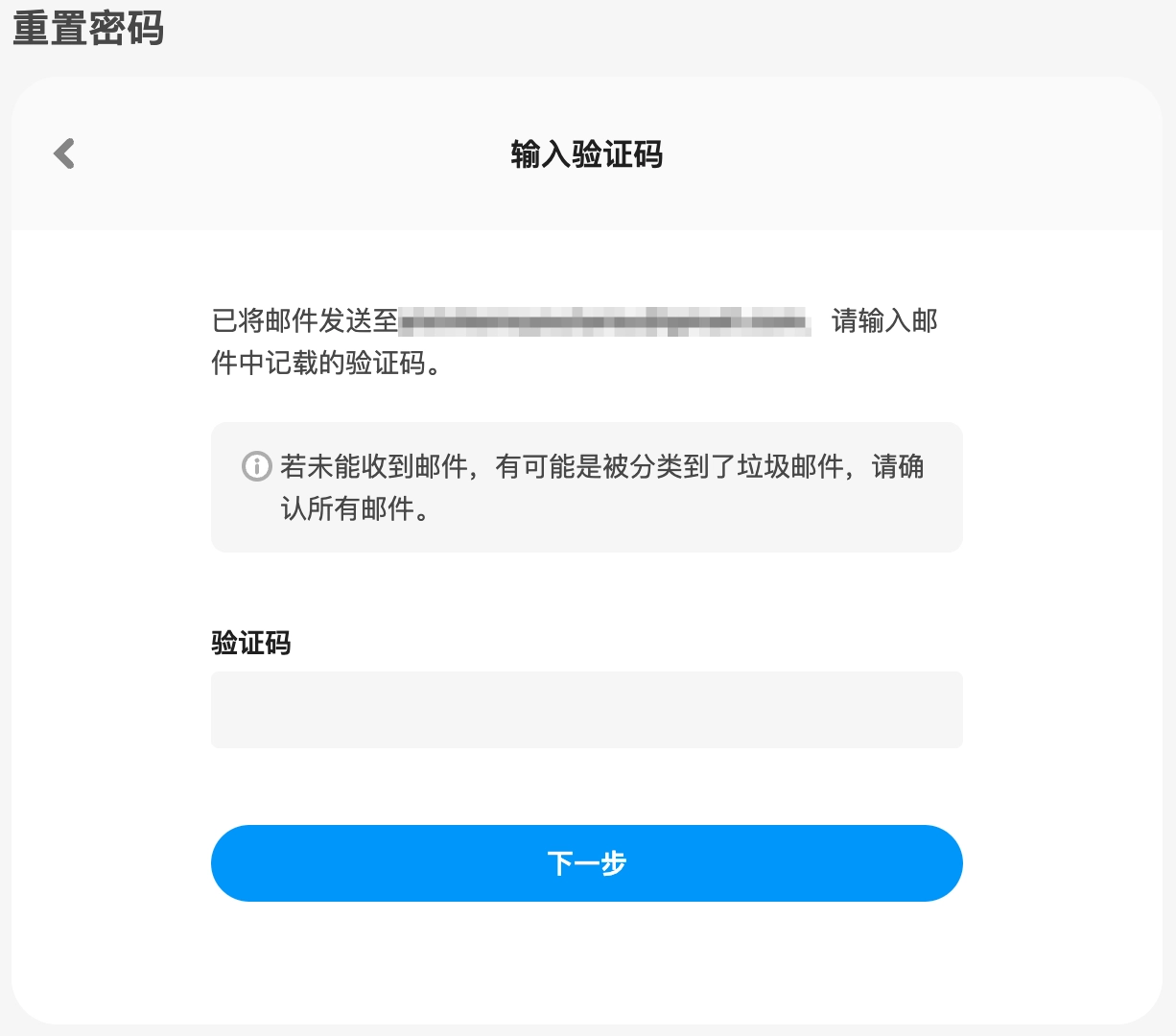 请把重置密码邮件里写着的验证码,填到验证码输入框中。