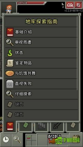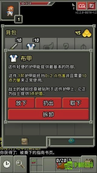 右下角是背包:能够查看和使用武器、防具、卷轴、种子之类的道具。