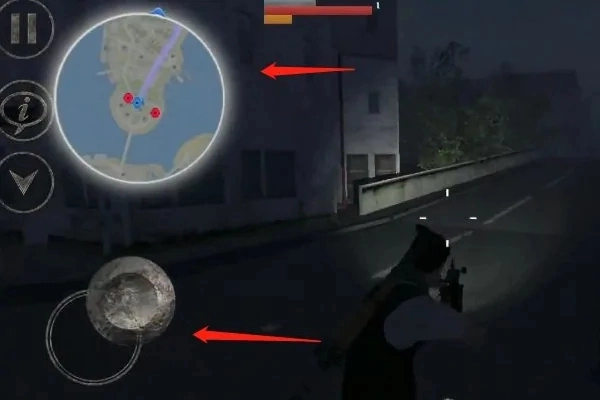 屏幕左上角的小地图能帮你掌握周边环境,左下角的小圆盘则用来操控角色的移动方向。
