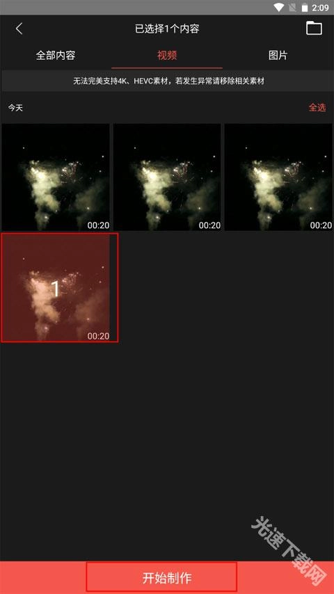 你可以先把想要制作的视频素材导入到相册里,选中这些素材后,点击下方的“开始制作”按钮就可以了。