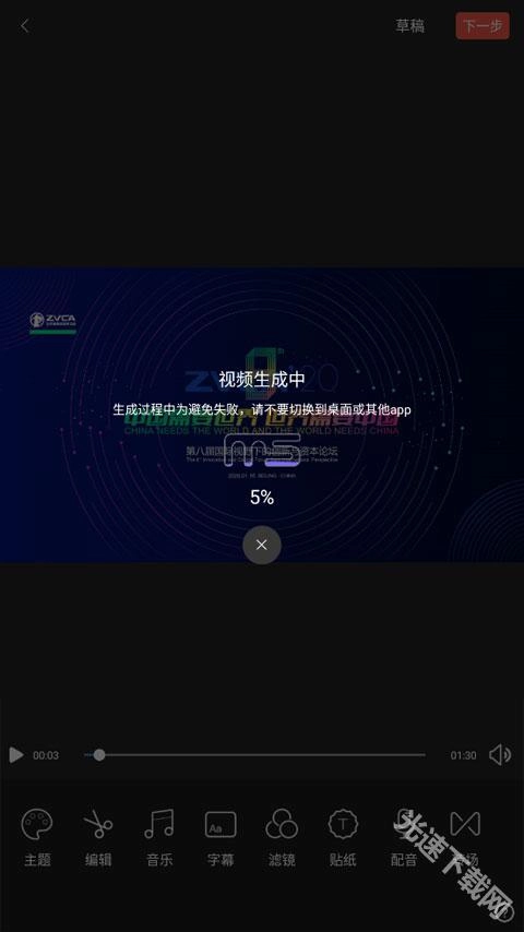 制作完成后,下一步是选择清晰度,最后则是视频生成的进度条。