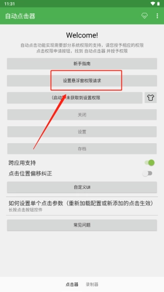 回到首页,点击“设置悬浮窗权限请求”来完成关键权限的配置。