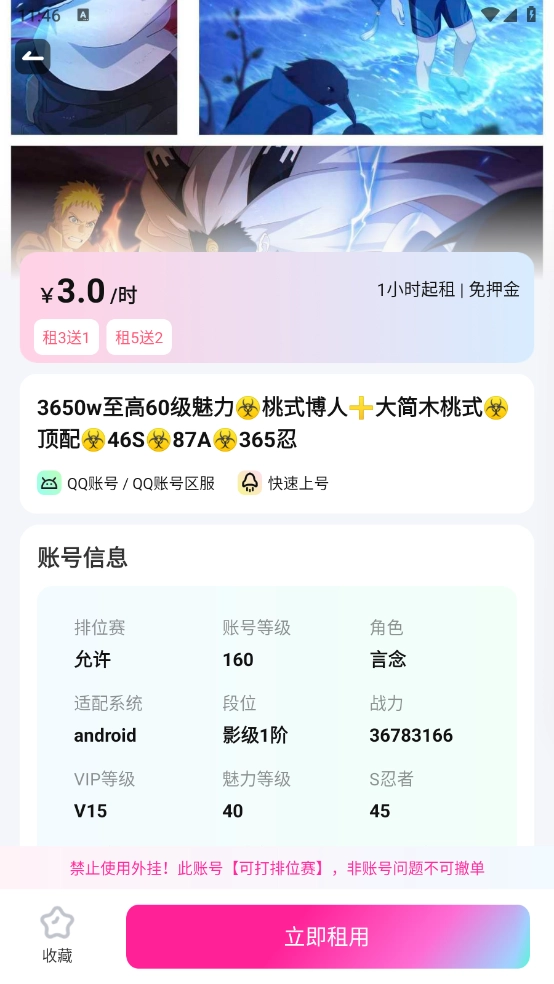 找到需要的账号之后,点开,点击“立即租用”即可。