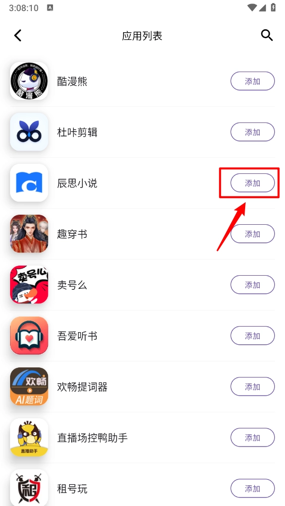 如图所示,进入对应界面后系统会自动识别出所有应用,你只需滑动屏幕选择想要多开的应用,然后点击“添加”按钮即可。