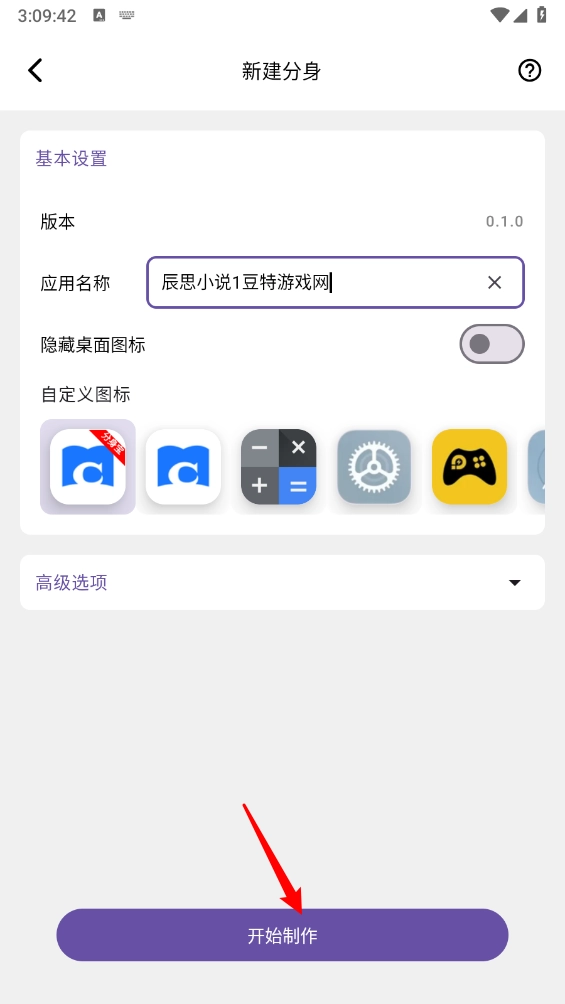 接着在新建分身的页面里,能够进行命名、自定义图标之类的操作,操作完成后点击“开始制作”按钮。