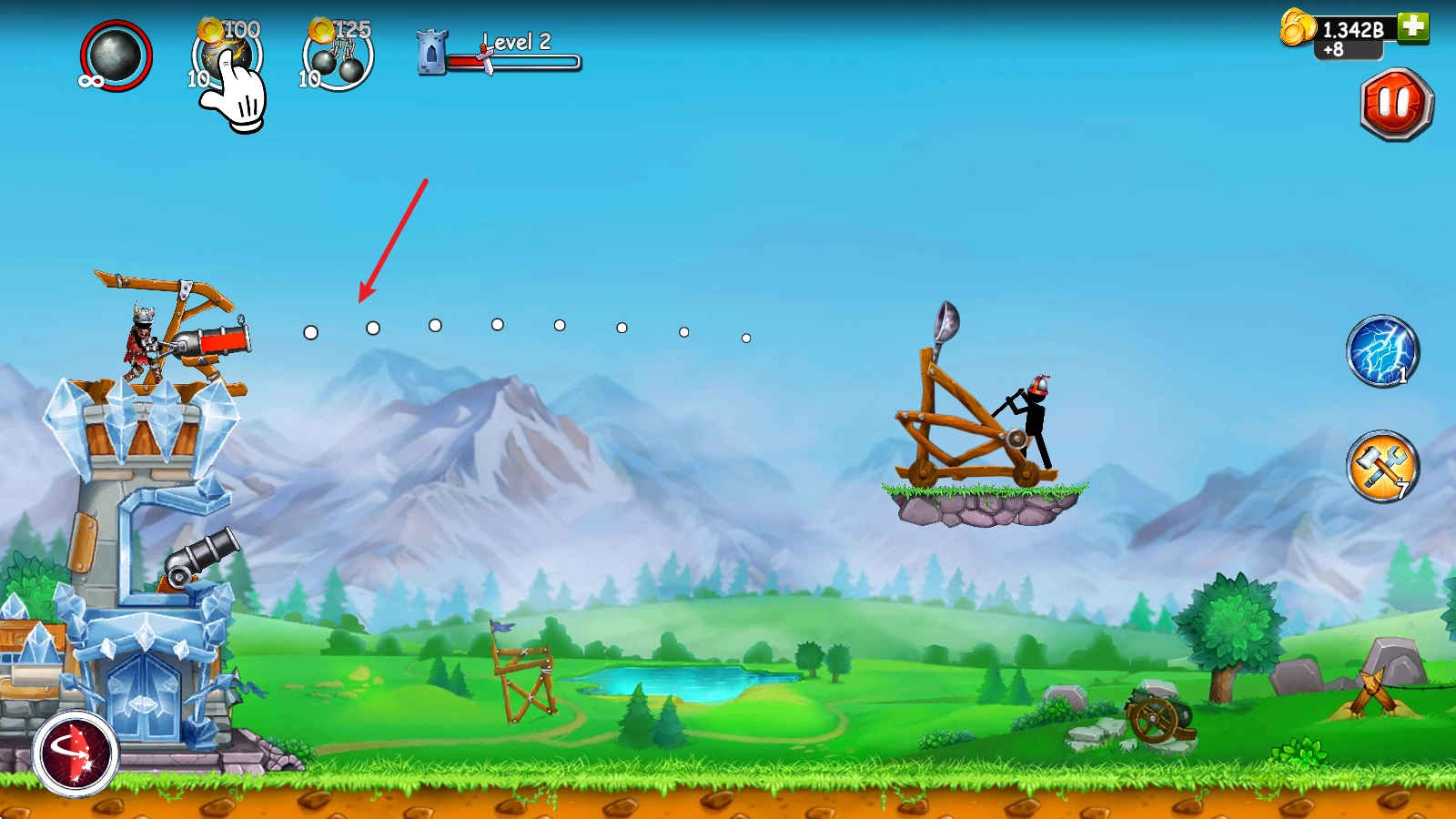 我们能够通过拖动屏幕来操控火柴人进行开炮操作,同时还会显示出相应的辅助线。
